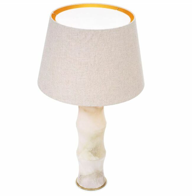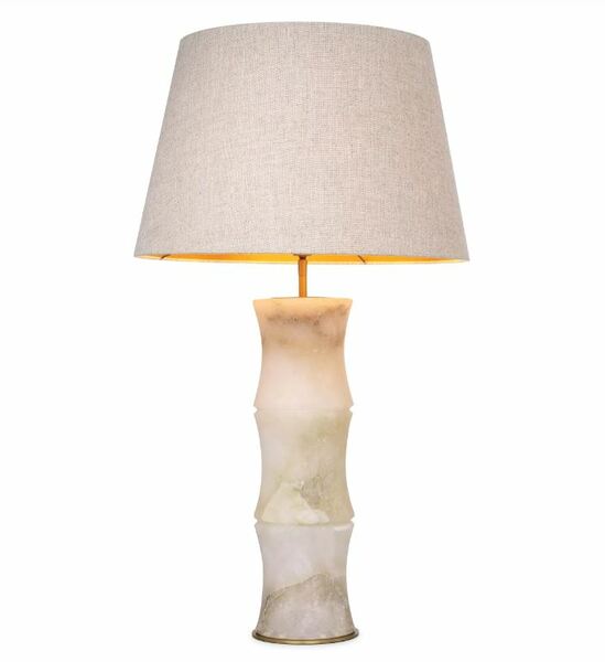 Ομορφύνετε το σπίτι σας με το επιτραπέζιο φωτιστικό Bonny. Αυτό το κομμάτι διαθέτει μια ανθεκτική βάση από αλάβαστρο σε σχήμα μπαμπού. Επικαλύπτεται με κωνικό καπέλο σε λινό ύφασμα. Είτε σε ένα παραδοσιακό, μοντέρνο ή εκλεκτικό περιβάλλον, πρόκειται να γίνει ένα ξεχωριστό χαρακτηριστικό οποιουδήποτε εσωτερικού χώρου.