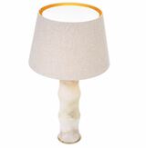 Ομορφύνετε το σπίτι σας με το επιτραπέζιο φωτιστικό Bonny. Αυτό το κομμάτι διαθέτει μια ανθεκτική βάση από αλάβαστρο σε σχήμα μπαμπού. Επικαλύπτεται με κωνικό καπέλο σε λινό ύφασμα. Είτε σε ένα παραδοσιακό, μοντέρνο ή εκλεκτικό περιβάλλον, πρόκειται να γίνει ένα ξεχωριστό χαρακτηριστικό οποιουδήποτε εσωτερικού χώρου.