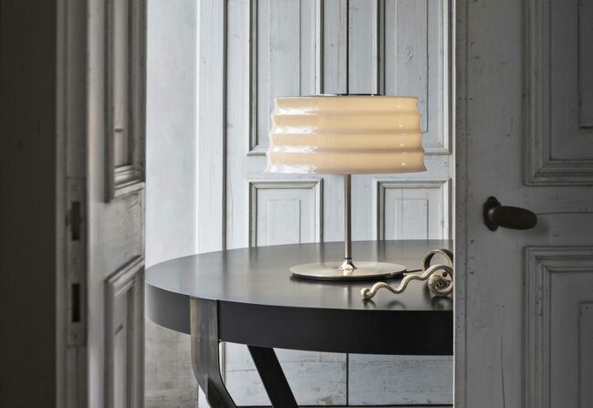 Μπορείτε να αναγνωρίσετε το κλασσικό μας C'hi από το γυάλινο αμπαζούρ, με τα κομψά κύματά του, που παίζουν ευγενικά με τα φώτα και τις σκιές στους τοίχους.