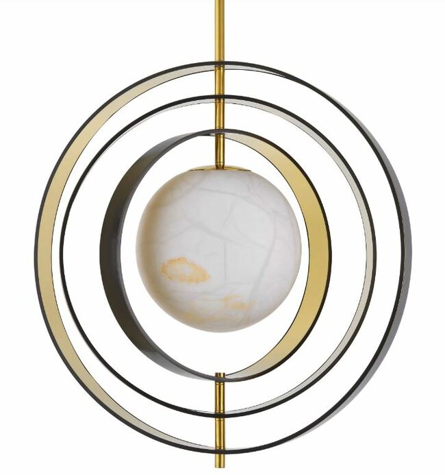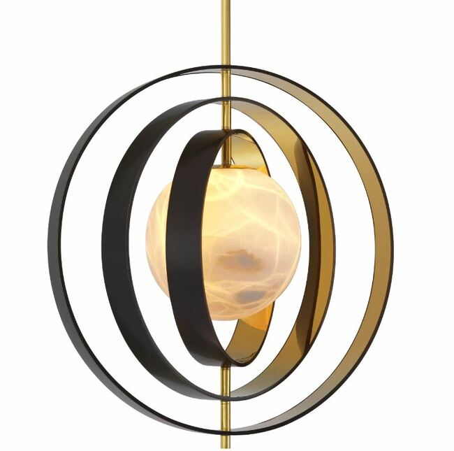 Με την ουράνια γοητεία του, το Chandelier Pearl αποτελεί ένα λαμπερό εστιακό σημείο στο εσωτερικό του σπιτιού σας. Η μαργαριταρένια απόχρωση του από αλάβαστρο περιβάλλεται από τέσσερις μεταλλικούς δακτυλίους που είναι μπρονζέ από έξω και χρυσό φινίρισμα στο εσωτερικό. Οι δακτύλιοι μπορούν να περιστραφούν μεμονωμένα.