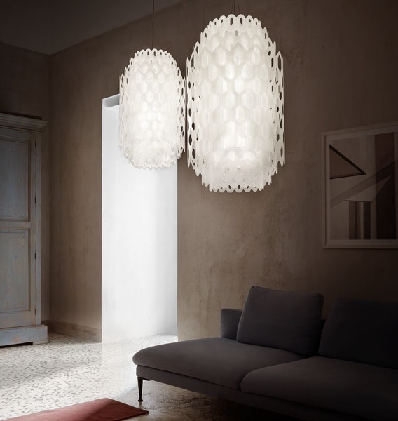 Το γλυπτό σχήμα του Chantal μοιάζει να έχει σχηματιστεί από ένα μοναδικό, βιομηχανικό πλαίσιο, σαν κυψέλη. Tα ομόκεντρα, εξάγωνα σχήματα επιτρέπουν ατέλειωτα μοτίβα. Η LED πηγή φωτός μοιάζει με κύματα που απομακρύνονται από την ακτή, αφήνοντας πίσω μικρές φωτεινές σταγόνες.