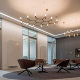 Kρεμαστός πολυέλαιος το σχήμα του οποίου είναι εμπνευσμένο από τον κρύσταλλο χιονιού. Σπονδυλωτές λάμπες με δομή αλουμινίου και γυάλινοι ανακλαστήρες αμμοβολής. Τα χρώματα που κυκλοφορεί είναι: γυαλισμένο αλουμίνιο, επιμεταλωμένο χρυσό ή μαύρο, ματ λευκό, ματ μαύρο ή ματ χρυσό. Το φως του διαχέεται ευρέως. Εφοδιασμένο με διαφανές καλώδιο.