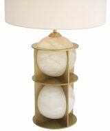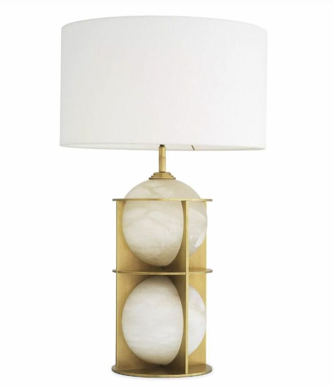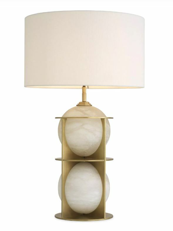 Ιδανικό ως μεμονωμένο επιτραπέζιο φωτιστικό ή ως ζευγάρι φωτιστικών δίπλα στο κρεβάτι, το Eternity έχει μια όμορφη βάση που αποτελείται από ένα ορειχάλκινο πλαίσιο φινιρίσματος που αποτυπώνει δύο μπάλες από συμπαγή αλάβαστρο για μια εμφάνιση πολυτέλειας. Παρέχεται πλήρης με εκρού υφασμάτινη απόχρωση.