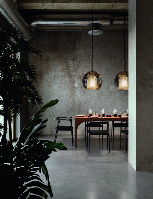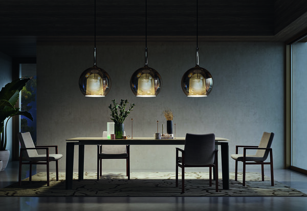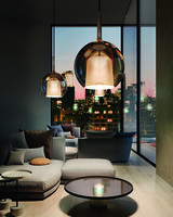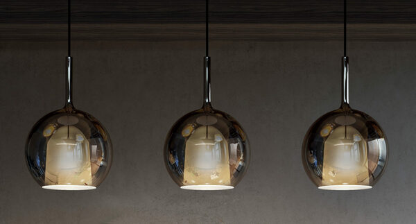 To Glo είναι ένα εικονικό κομμάτι της συλλογής μας, μια γυάλινη σφαίρα που ενισχύει το φως, μέσα σε ένα παιχνίδι αντικατοπτρισμών μεταξύ φωτιστικού και χώρου ή άλλων φωτιστικών.