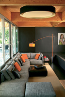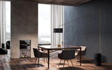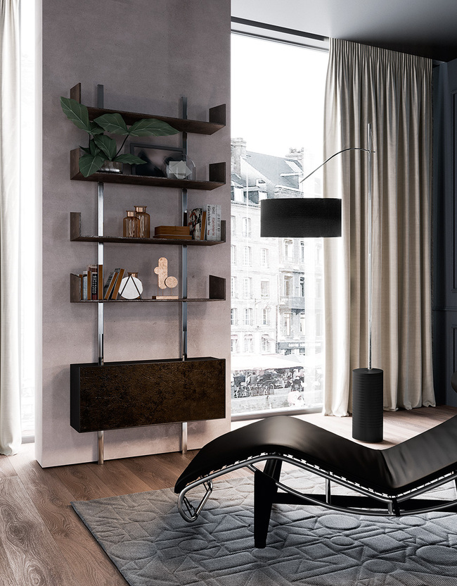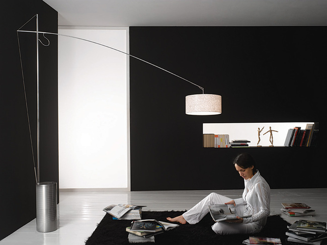 Επιδαπέδιο φωτιστικό με βάση από σίδερο και τελείωμα από ατσάλι. Μπορεί να προσαρμοστεί το ύψος του και να περιστραφεί 280°.