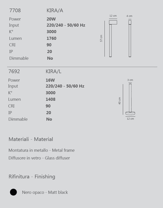 Ανάμεσα σε σχεδιασμό και τέχνη, η Kira μοιάζει με ένα μεγάλο σύγχρονο φωτιστικό γλυπτό που κυριαρχεί στο χώρο μέσω της στιβαρής δύναμης της εγκατάστασής του. Η Kira κάνει αισθητή την παρουσία της και διαχέει ένα απαλό και άνετο φως.