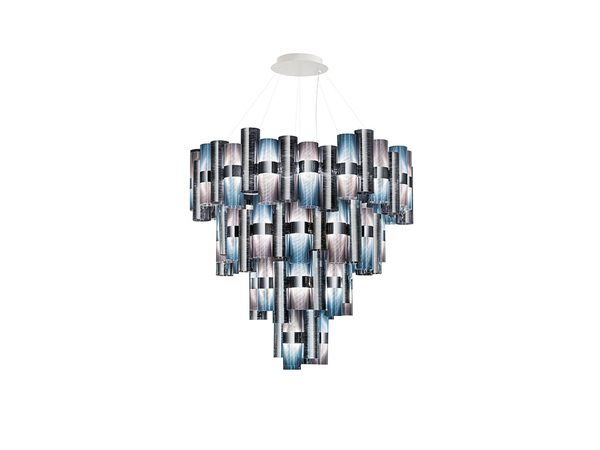 Το La Lollo και το La Lollona είναι ένας φόρος τιμής στη δεκαετία του '50, παραπέμποντας σε εικόνες, ντίβες και φλας. Εκλεπτυσμένα χρωματικά ντεγκραντέ, μεταλλοποίηση, μοτίβα δαντέλας και γεωμετρικά σχέδια που κοσμούν διαφορετικούς χώρους με την ίδια ευελιξία όπως τα κοσμήματα στο σώμα μιας γυναίκας. Το La Lollona 5 είναι 130 cm. σε διάμετρο με 132 από τους μοναδικούς κυλίνδρους τεχνοπολυμερούς της Slamp. Φτάνει σε superflat συσκευασία που ζυγίζει μόνο 30 κιλά. εύκολο στην εγκατάσταση, εξαιρετικό για θαυμασμό!
