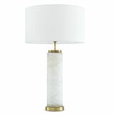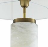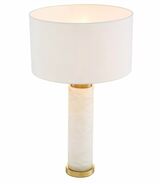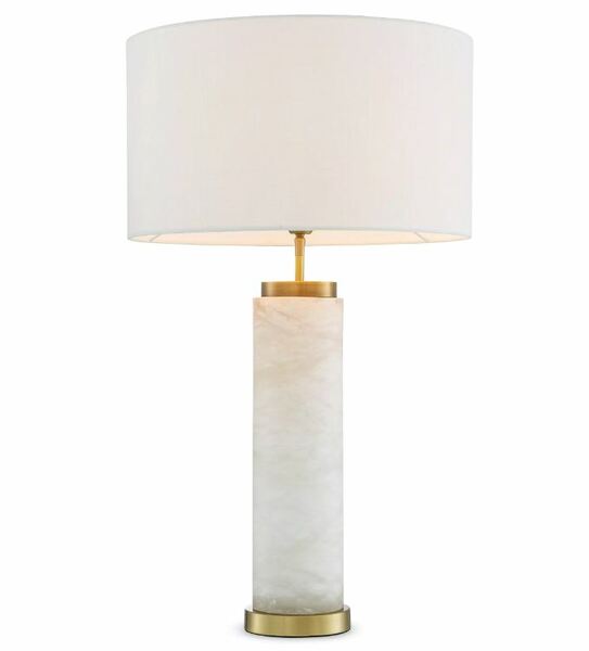 Το επιτραπέζιο φωτιστικό Lxry αποπνέει κομψότητα. Αυτό το υπέροχο φωτιστικό έχει κυλινδρικό σώμα από αλάβαστρο και βάση και υποδοχή με φινίρισμα από ορείχαλκο. Ολοκληρώνεται με εκρού απόχρωση για να ταιριάζει σε όλα τα ντεκόρ. Ιδανικό για διαδρόμους, σαλόνια, τραπεζαρίες, υπνοδωμάτια και άλλους χώρους.