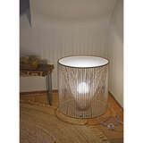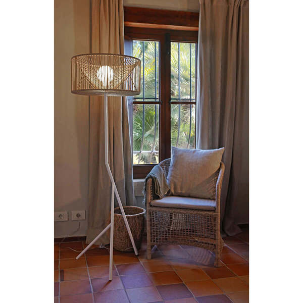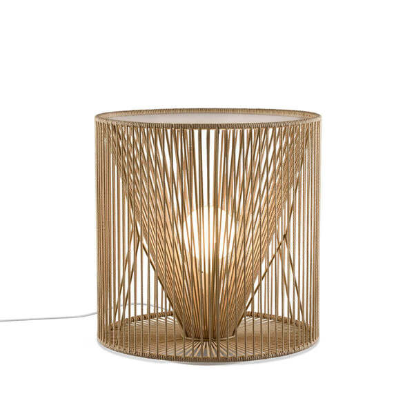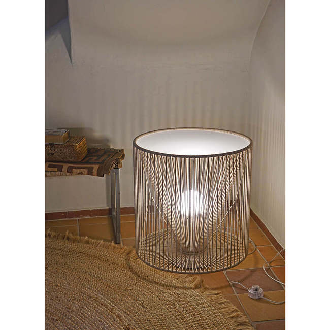 Η ορατή μεταλλική κατασκευή και η καλειδοσκοπική πλέξη από διακοσμητικό κορδόνι από ανακυκλωμένα πλαστικά μπουκάλια είναι τα χαρακτηριστικά αυτής της νέας πρότασης της οικογένειας φωτιστικών μας. Με το κυλινδρικό του σχήμα, το MARIOLA διατίθεται σε δύο πρωτότυπες επιλογές φωτιστικών δαπέδου.