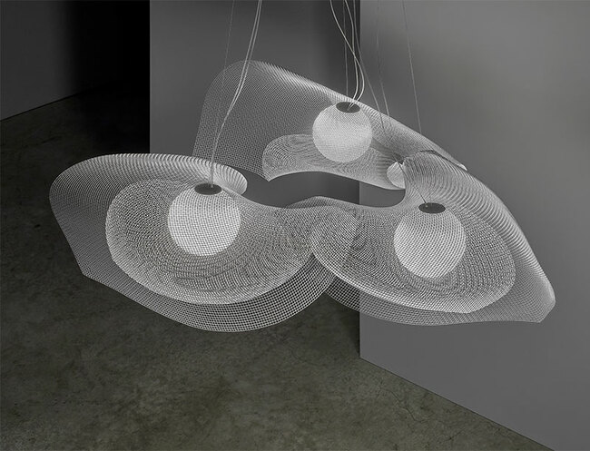 H σύνθεση κρεμαστών φωτιστικών Mytilus είναι μια χειροποίητη κατασκευή του Arturo Alvarez. Αυτό το φωτιστικό είναι μέρος μιας συλλογής εμπνευσμένης από τον βυθό της θάλασσας, ο οποίος είναι γεμάτος ζωή και κίνηση χάρη στα μαγευτικά κύματα που κινούν τα ρεύματα του ωκεανού. Κύματα, κυκλικά και οργανικά σχήματα, ένας ελικοειδής, μυστήριος και αιώνιος κόσμος.