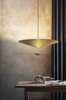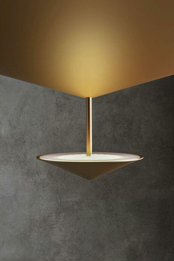 Όπως στον κλασικό μύθο ο Νάρκισσος κοιτάζει το είδωλό του στο νερό, αντίστοιχα ο κώνος αυτού του φωτιστικού χωρίζει για να μοιράσει και να αντανακλάσει το κομψό φως του. Η επιτραπέζια εκδοχή αποτελεί αναφορά στη μουσική, αφού μπορεί να έχει bluetooth ηχεία.