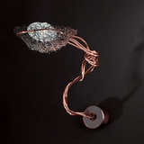 Φωτιστικό τοίχου με διασκορπισμένο φως και προσωποποιημένο σχήμα που μοιάζε με χειροποίητες χάλκινες πλεξίδες . Οι φωλιές έχουν κατασκευαστεί από μέταλο, εξ'ολοκλήρου στο χέρι. Το αυγό είναι από φυσητό γυαλί όπου η λάμπα τοποθετείται μέσα στη φωλιά.