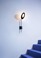Προσαρμοσμένο φωτιστικό τοίχου με ανακλαστήρα από πολυανθρακική αμμοβολή σε ματ λευκό, για ευρύ θερμό φωτισμό. To σώμα του φωτιστικού είναι από μαύρο αλουμίνιο. Ο βραχίωνας τοίχου είναι από πολυμερές με ίνες γυαλιού.