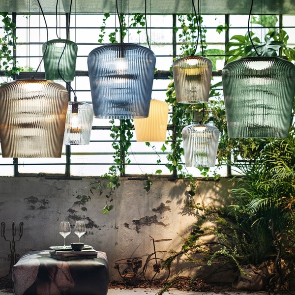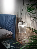 Φωτιστικό με δομή αλουμινίου και ανακλαστήρα από φυσητό γυαλί. Διατίθεται σε ματ λευκό ή ματ μαύρο χρώμα, κι έχει δύο πηγές φωτός: είτε LED είτε Ε27. Οι γυάλινοι ανακλαστήρες διατίθενται σε λευκό, διάφανο κεχριμπάρι, διάφανο κρύσταλλο, διάφανο μπλε ή διάφανο πράσινο. Έχει άμεσο φωτισμό.