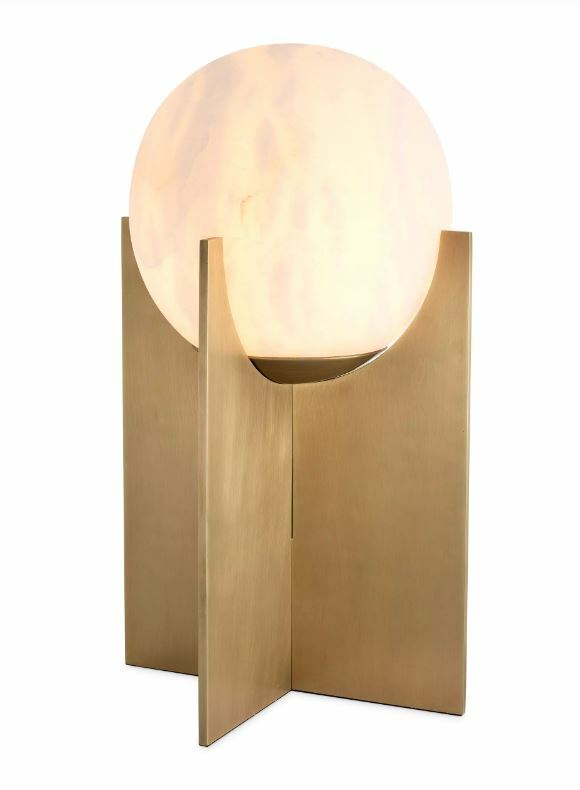 Το επιτραπέζιο φωτιστικό Scorpios θυμίζει σε κάποιον το φεγγάρι χάρη στο σχέδιο στη σφαίρα του από αλάβαστρο. Η απλή βάση αυτού του μινιμαλιστικού επιτραπέζιου φωτιστικού διαθέτει ένα φινίρισμα από ορείχαλκο. Μπορείτε να κάνετε το φως να φαίνεται είτε ζεστό λευκό είτε έντονο λευκό, ανάλογα με τον τύπο του λαμπτήρα που χρησιμοποιείτε.