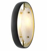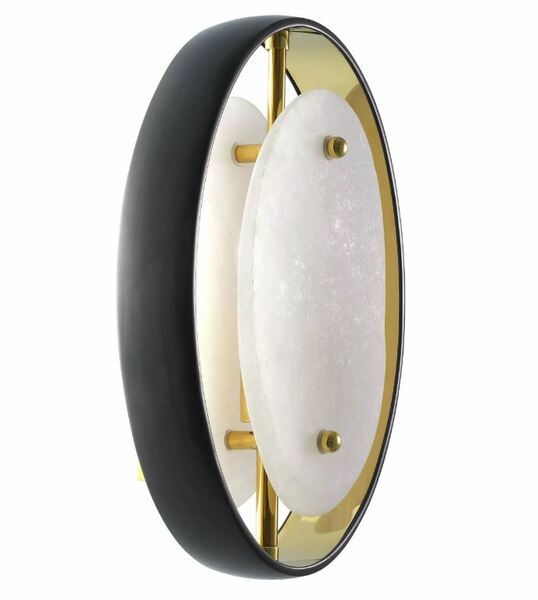 Απλό αλλά διακοσμητικό, το Επιτοίχιο Φωτιστικό Trissoni είναι μια τέλεια προσθήκη σε μοντέρνους και βιομηχανικούς εσωτερικούς χώρους. Το εξάρτημα έχει μεταλλικό δακτύλιο φινιρίσματος με χρυσό στο εσωτερικό για να αντανακλά το φως. Δύο ελεύθερες πλάκες από αλάβαστρο κρατούν τον λαμπτήρα μακριά από το οπτικό πεδίο.